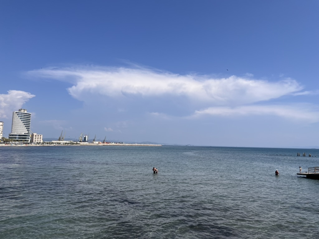 The beach at Durrës is very clean, though quite shallow; the water near the shore barely reached my shoulders, at about a meter deep. The sea is clear and the waves are gentle, making it ideal for swimming. I thoroughly enjoyed my time in the water with Dea.