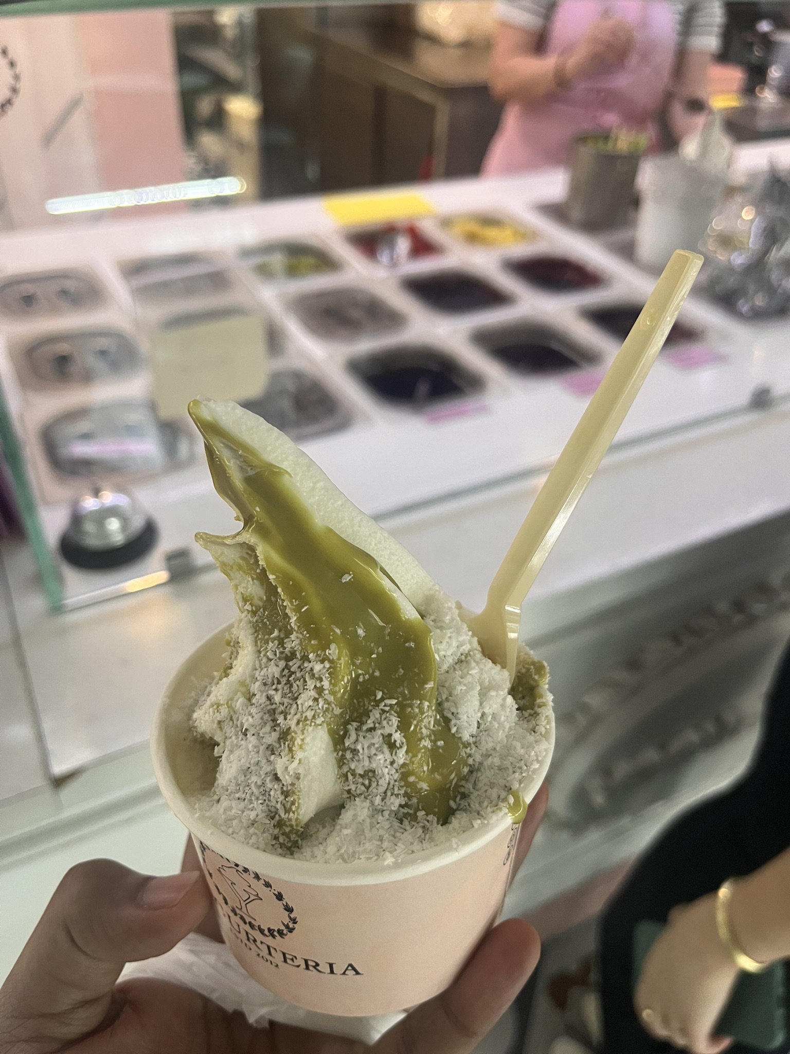 This was probably the first time I had frozen yogurt—and it’s likely one of the best I’ll ever have. Albanians serve their froyo with a variety of fruit jams (strawberry, avocado, blueberry) and toppings like crushed almonds and shredded coconut. It was so good that I had it again in Durrës. I hope I get to try it again someday.