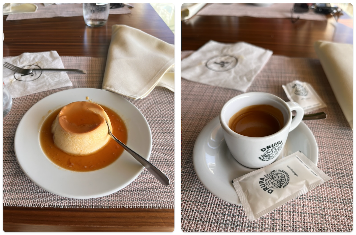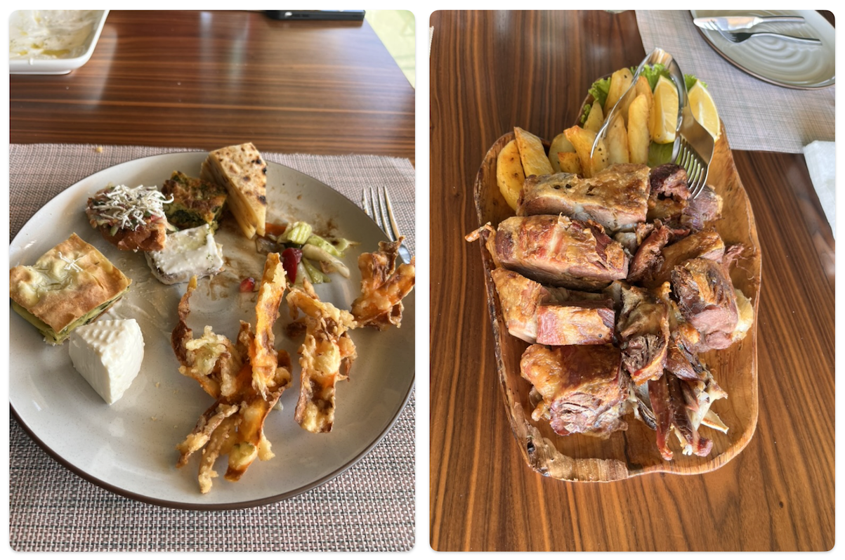 I had the pleasure of sharing a traditional lunch with Dea’s family, and the local food was delicious. We enjoyed goat shoulder, a platter of traditional Albanian dishes, and finished with flan accompanied by their classic espresso. The meal was made even more memorable by the setting—at the top of the Dajti Mountains, which you can reach from Tirana by cable car (except on Tuesdays).