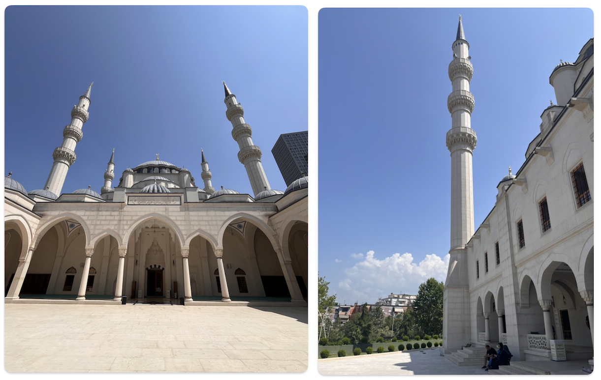 In 2024, the Namazgah (Grand) Mosque of Tirana was inaugurated by Turkish President Recep Tayyip Erdoğan. The mosque was built almost entirely with funding from the Turkish government—about $30 million, provided through (Diyanet). Its location near the Albanian parliament underscores the growing acceptance of Islam in a country that was, until recently, officially atheist. Today, it stands as the largest mosque in Albania, accommodating 8,000 people inside the main dome and an additional 2,000 in the courtyard. The Islamic architecture is strikingly beautiful.