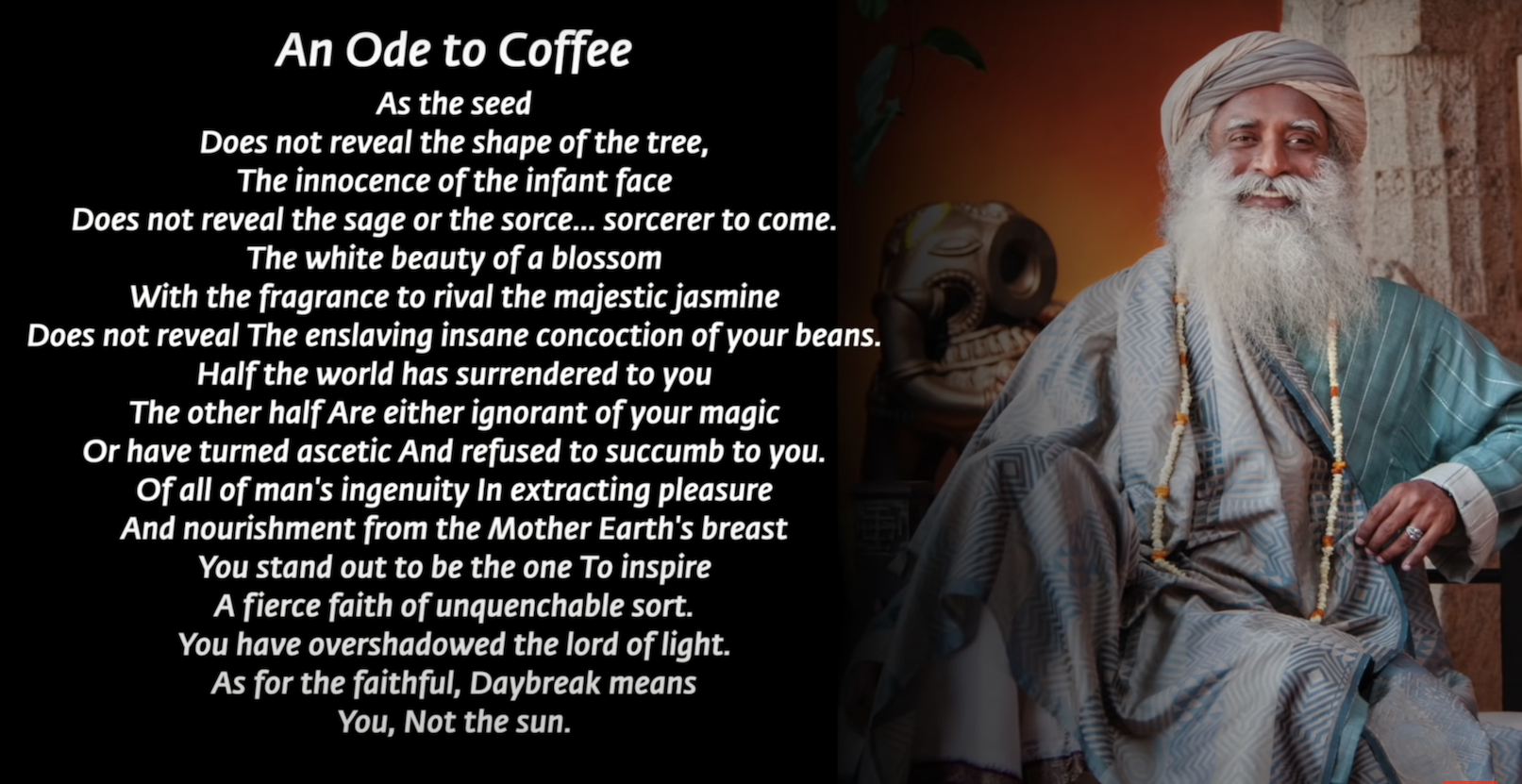 He brought the plant to some monks, who made a drink out of it. There — we had coffee.