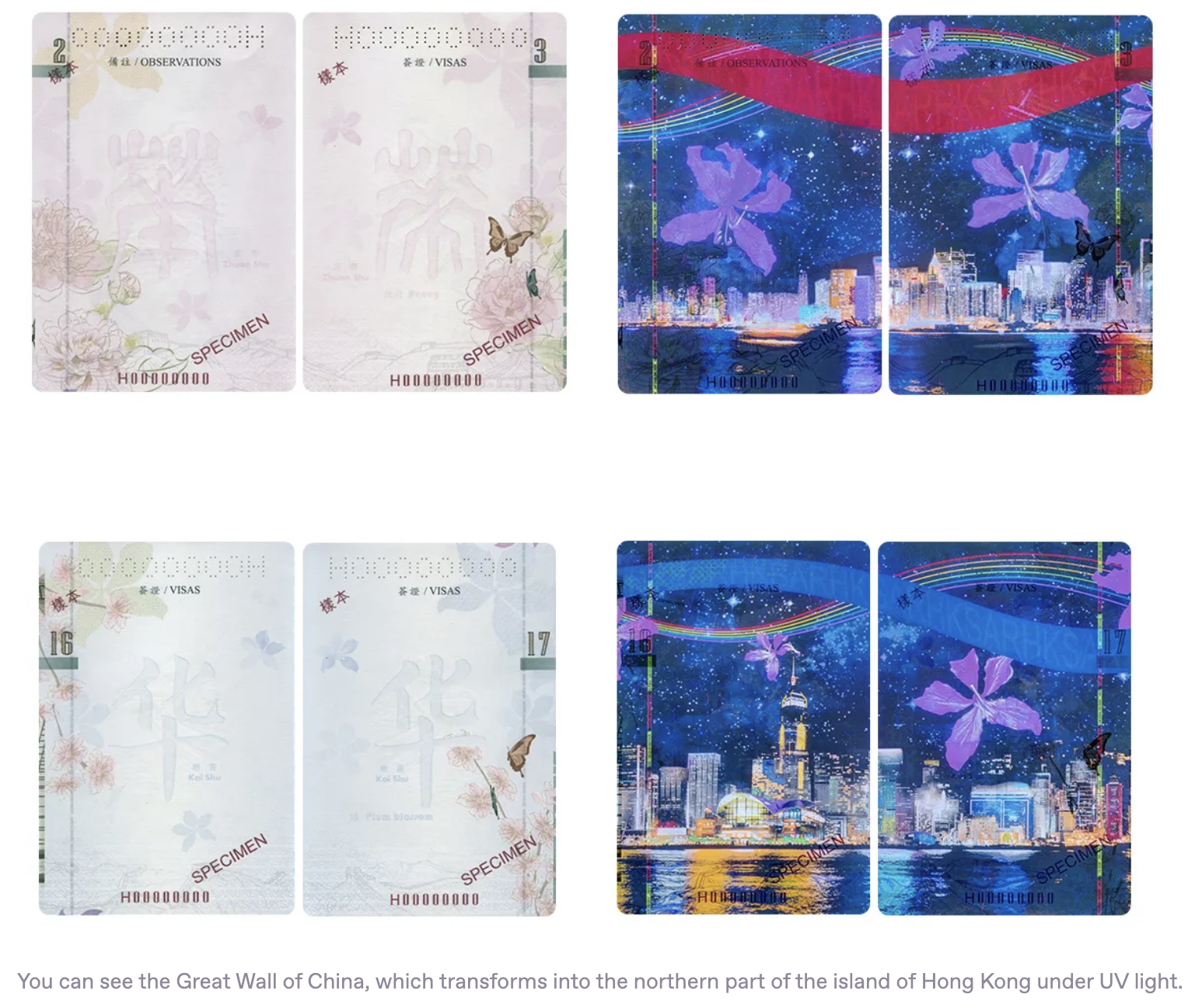 Hong Kong’s passport is a marriage of old world artistry and their futuristic skyline.