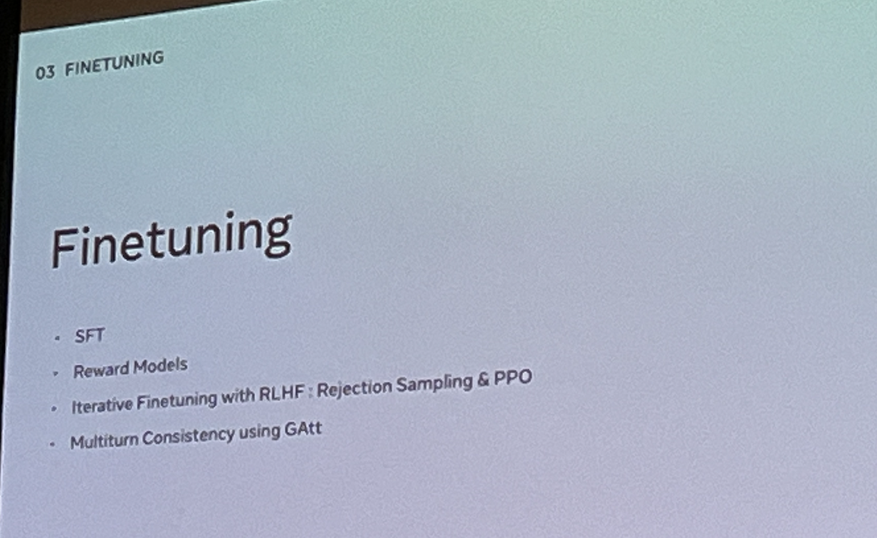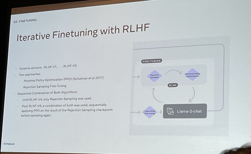For fine-tuning the model (LLaMA 2), perform RLHF and Rejection Sampling